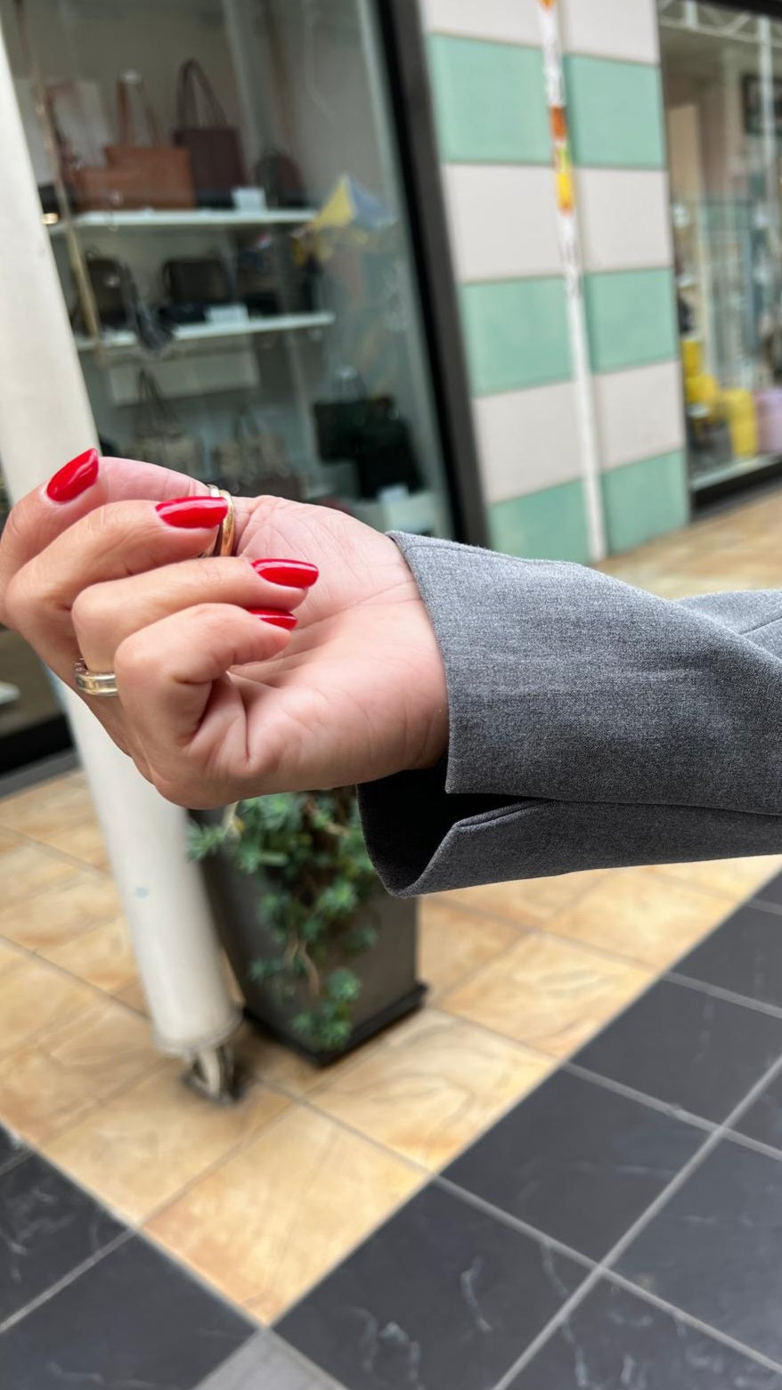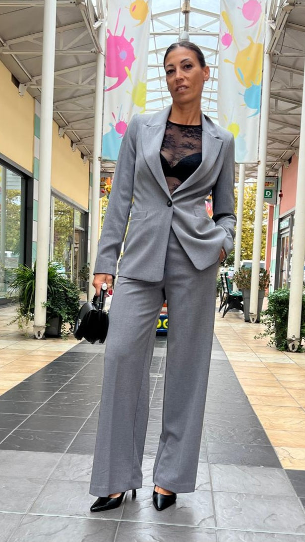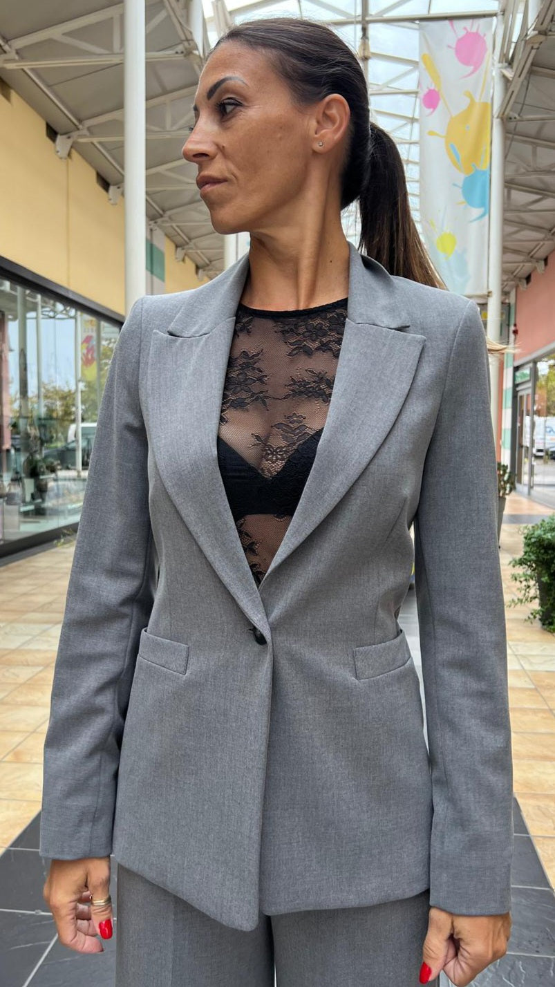 Giacca con un solo bottone, tasche a filetto e manica con spacchetto sul polso.