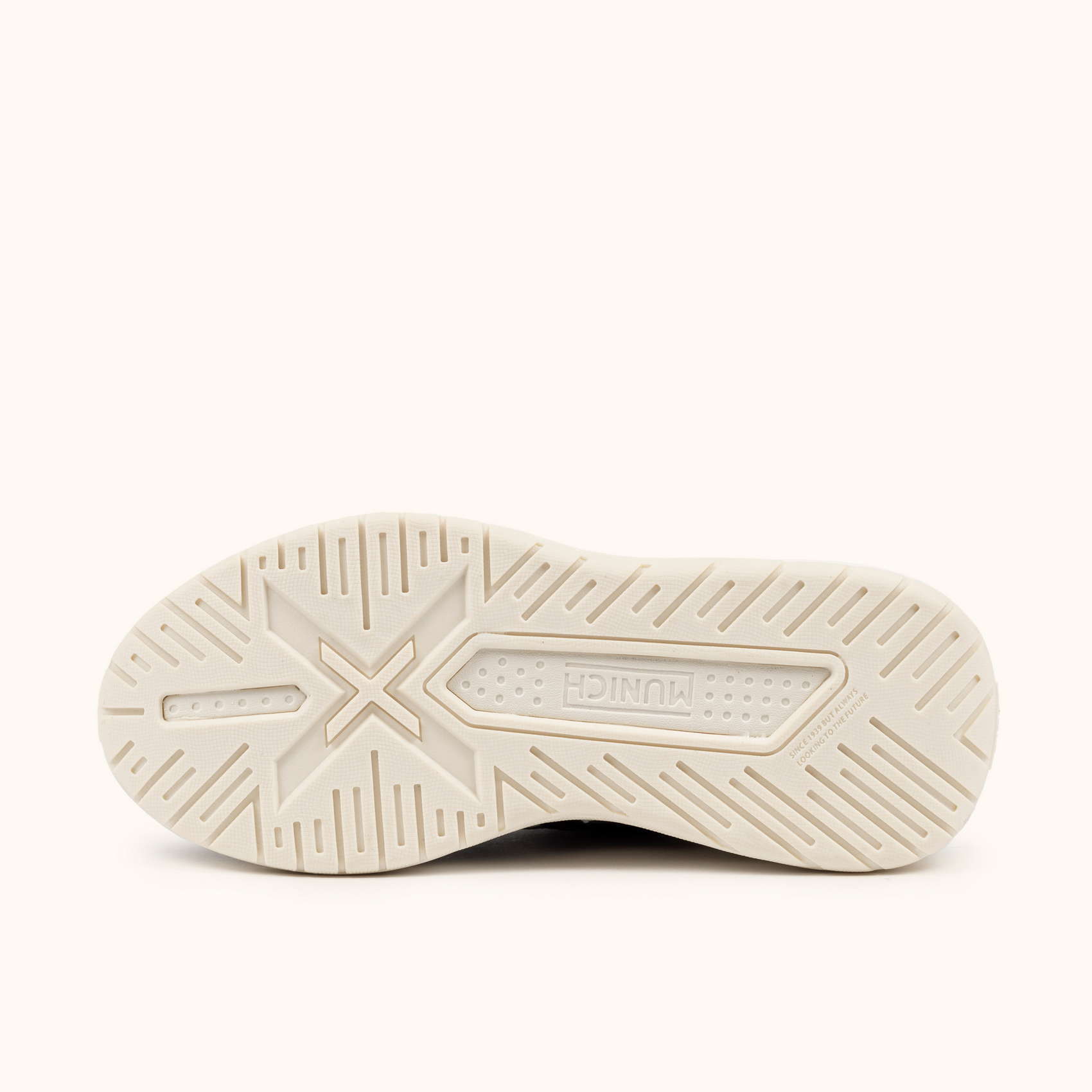 La suola è spessa e imponente, tipica del design chunky. È di colore bianco crema , con un battistrada strutturato che si estende leggermente oltre il tallone, fornendo un aspetto robusto.