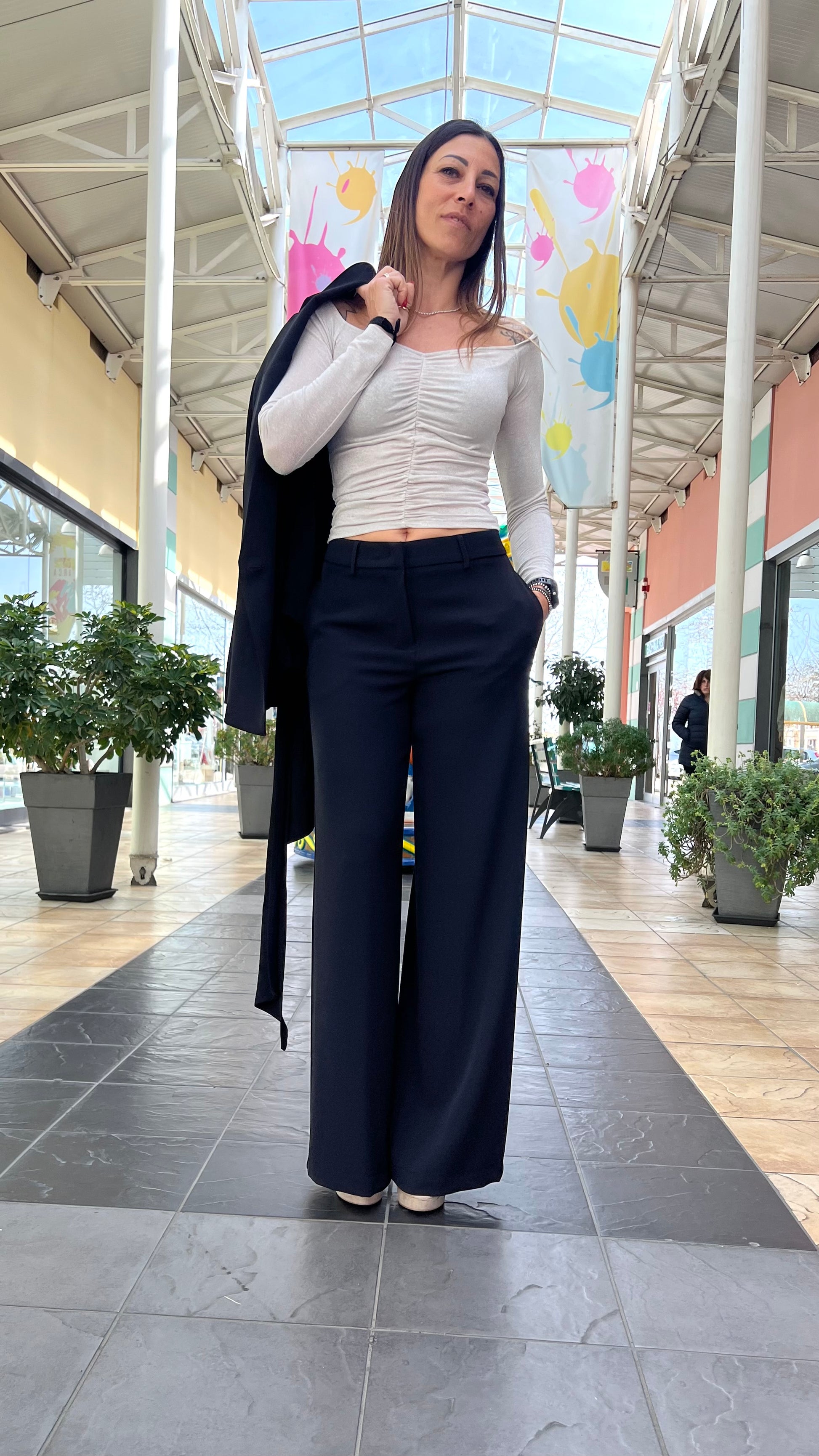 La modella è alta 175 cm e indossa una taglia 42